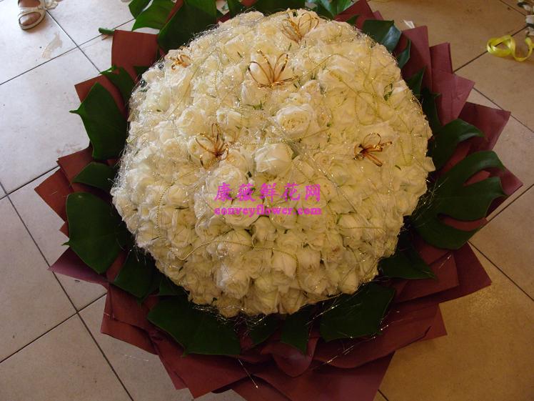 材料:白色玫瑰365枝,绿叶外围,手揉纸高档包装