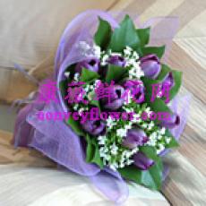 10支紫色郁金香加绿叶、紫色手柔纸包装,在这个特别的日子里送给特别的人(季节性鲜花,预定前请先咨询)