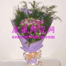 材料:紫玫瑰11枝,紫色郁金香9枝,石竹梅或绿叶搭配,绿叶,紫色高档包装(此花预定前请先咨询,并限送各大城市)