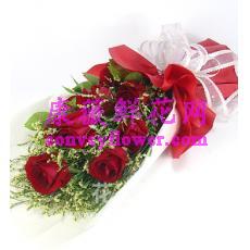 材料:精选9朵红玫瑰,适量水晶草搭配,手揉纸单面包装。