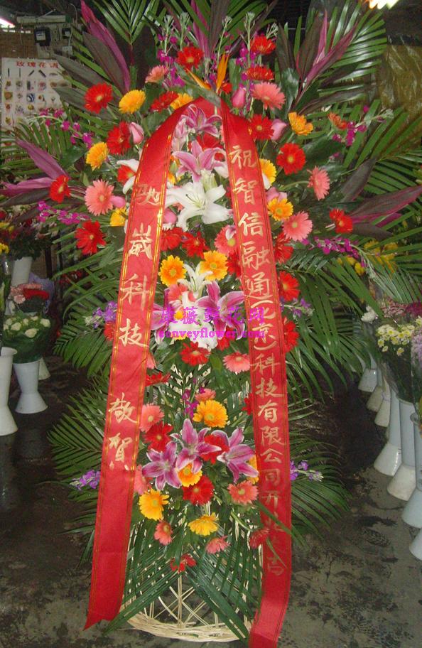 材料:三层开业花篮,百合,扶朗,绿叶,高1.7米
