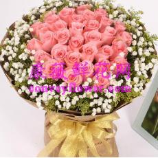 材料:33支戴安娜玫瑰满天星黄莺圆形包装